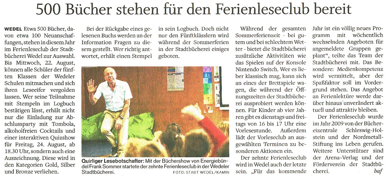 Der FERIENLESECLUB startete -zum vorerst wohl letzten Mal- und Frank Sommer übernahm es, mit den Schülern der fünften Klassen den sommerlichen LeseEvent zu eröffnen.