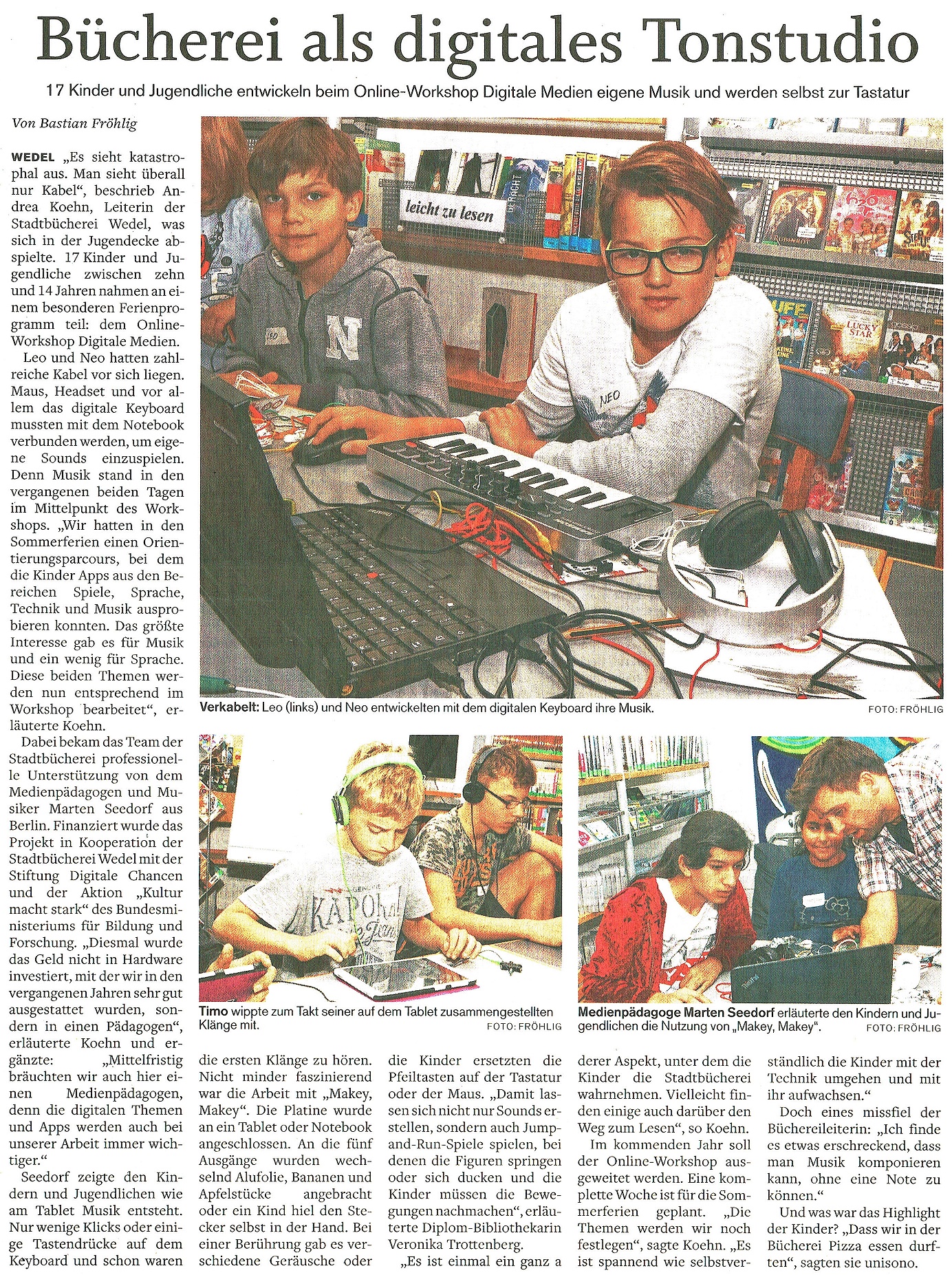 Die Stadtbücherei Wedel war (wieder einmal) eine der ersten Einrichtungen, die mit der Veranstaltungsreihe Digital trifft Kultur gestartet ist. Die Ausschreibung und Bewerbung für Projektmittel erfolgte im Frühjahr.